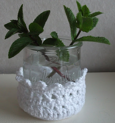 Très jolie réponse à ce défi ! De la récup, du crochet blanc tout délicat : j'adore.