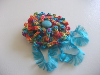 cette fleur multicolore est superbeb sur ton turban..c'est gai et cela doit êre bien agréable à poser sur les oreilles!!